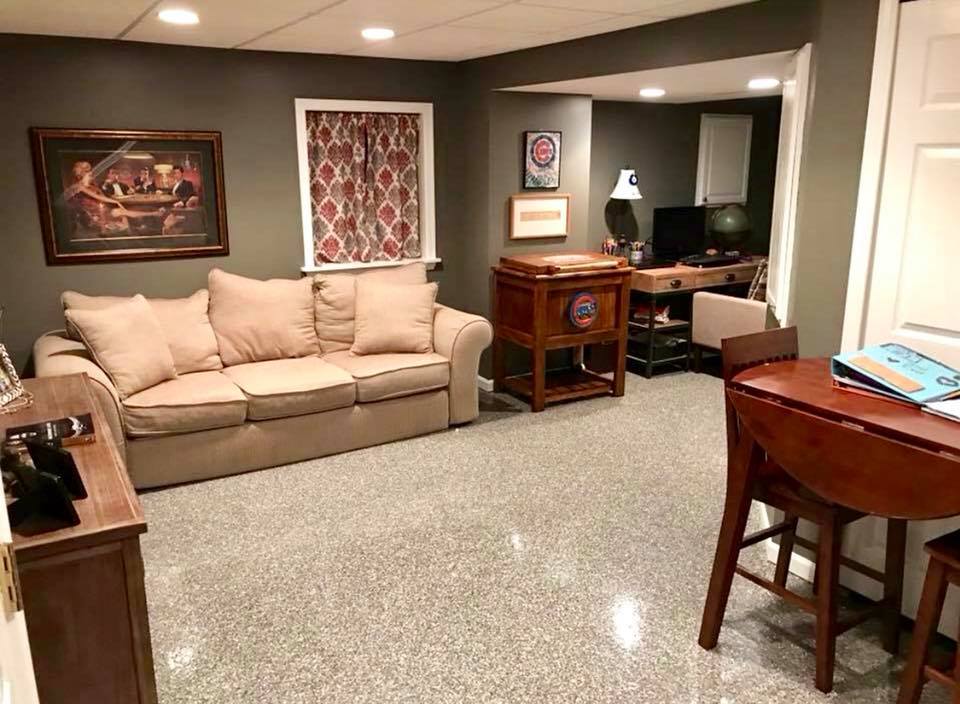 You want your basement to be comfortable. As an extension of your upstairs living space, you want functionality with the ease of cleaning. Equally, with some homes, flooding is a fear. What if you didn’t have to worry about dealing with carpet, linoleum, or wood, and could just squeegee up the mess? Often homeowners put low quality flooring in the basement, then pay for the consequences later. They later find it’s one of the biggest hindrances to getting the most enjoyment and functionality out of this space.