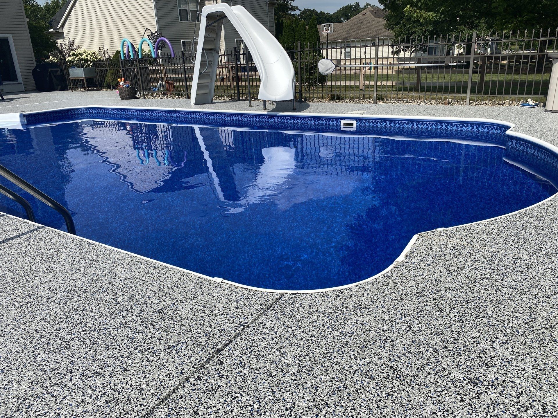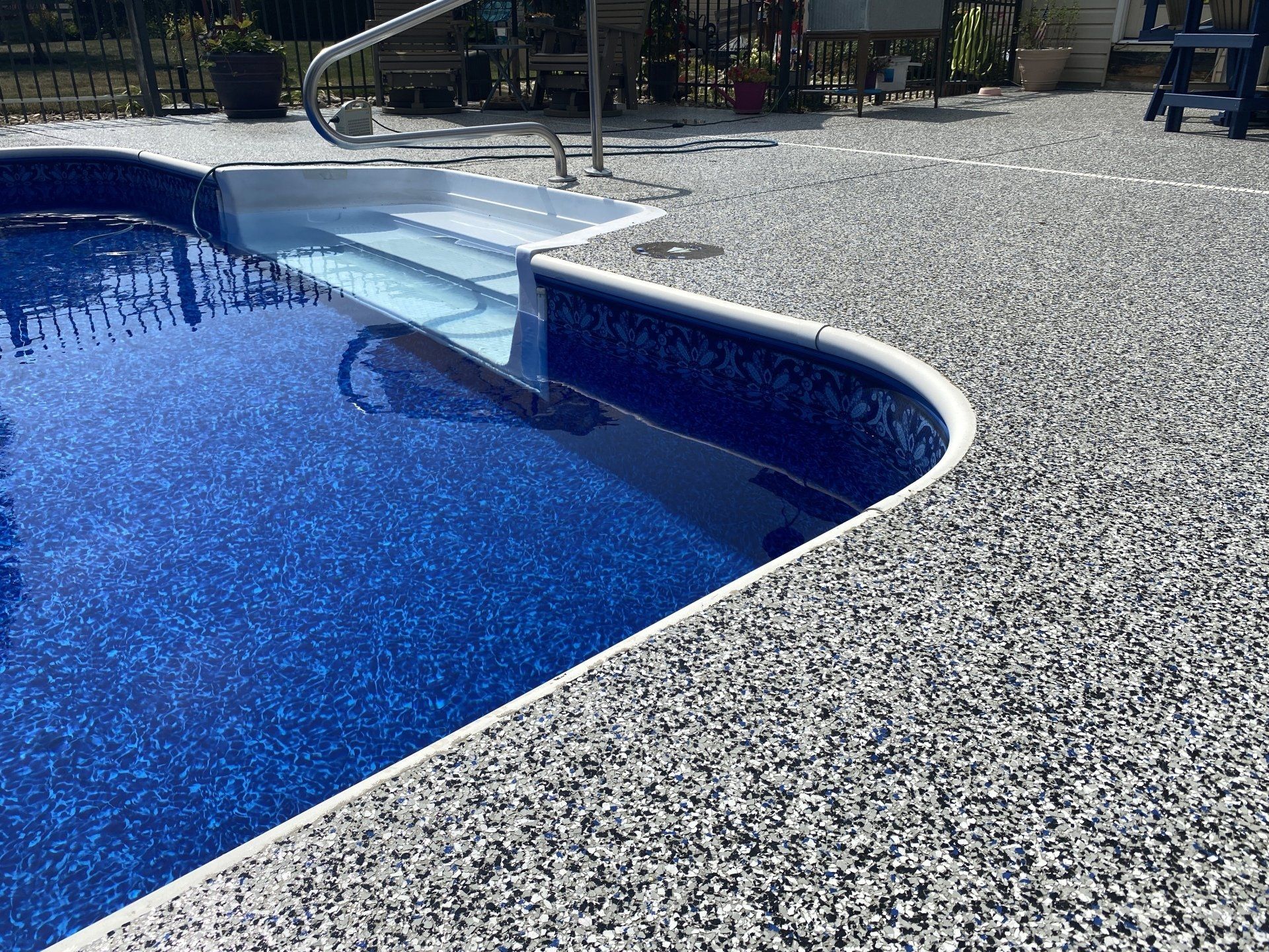 Safety is the first word you think of when considering the area around your pool. Not only is our concrete coating slip-resistant, but it also stays cool to the touch, is antimicrobial, impact resistant and super easy to clean.
