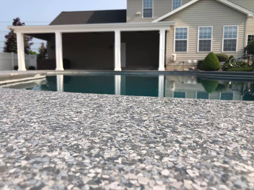 The one word that comes to mind for anyone who owns a pool is safety. If you have a pool on your property, you know the importance of having a safe and functional outer pool area for your peace of mind. Not only do our pool deck coatings look beautiful, they are slip resistant and come in a variety of color to match any of your outdoor color schemes. A pool deck must be capable of withstanding extreme temperatures, frequent foot traffic and pool chemicals, and this is exactly what you will find with a new pool deck coating installed by our certified installers.